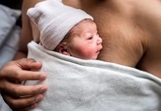 Le papa a toute sa place dans l’échange peau à peau avec le nouveau-né. Il peut en bénéficier sur demande ou si la maman a accouché par césarienne.